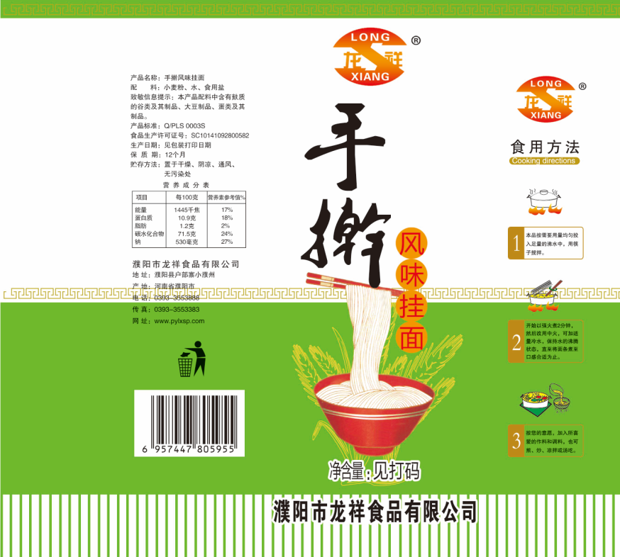 濮陽市龍祥食品有限公司位于河南省濮陽縣戶部寨鎮(zhèn)小濮州,始建于1994年,前期投資200萬元,經(jīng)過幾年的努力,大力開發(fā)市場,由于市場的需求量急劇上升,出現(xiàn)供不應(yīng)求,于2004年擴建,建成一座新型的現(xiàn)代化面粉加工企業(yè),并擁有全國先進全自動生產(chǎn)設(shè)備一套,產(chǎn)量由以前的100噸/天,提高到現(xiàn)在400噸/天。 2012年再次擴大規(guī)模申請為濮陽市龍祥食品有限公司,注冊資金500萬元。2012年又投資800萬元新建掛面生產(chǎn)線一條,日產(chǎn)掛面50噸。龍祥食品有限公司現(xiàn)有職工120余人,總工程師1人,專業(yè)技術(shù)人員10人,經(jīng)濟師1人,會計師1人,銷售人員2人,優(yōu)秀專業(yè)人員20余人?! ↓埾楣咀詣?chuàng)建以來,社會效益十分可觀。公司一直以“今天的質(zhì)量,明天的市場”為信念,“一切為了客戶需求,竭誠追求完美品質(zhì)”為企業(yè)宗旨,走專業(yè)化經(jīng)營和職業(yè)化管理的路子。